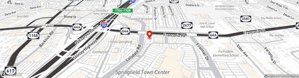 Conveniently located just off the Capital Beltway and I95 Near Target at Springfield Towne Center.